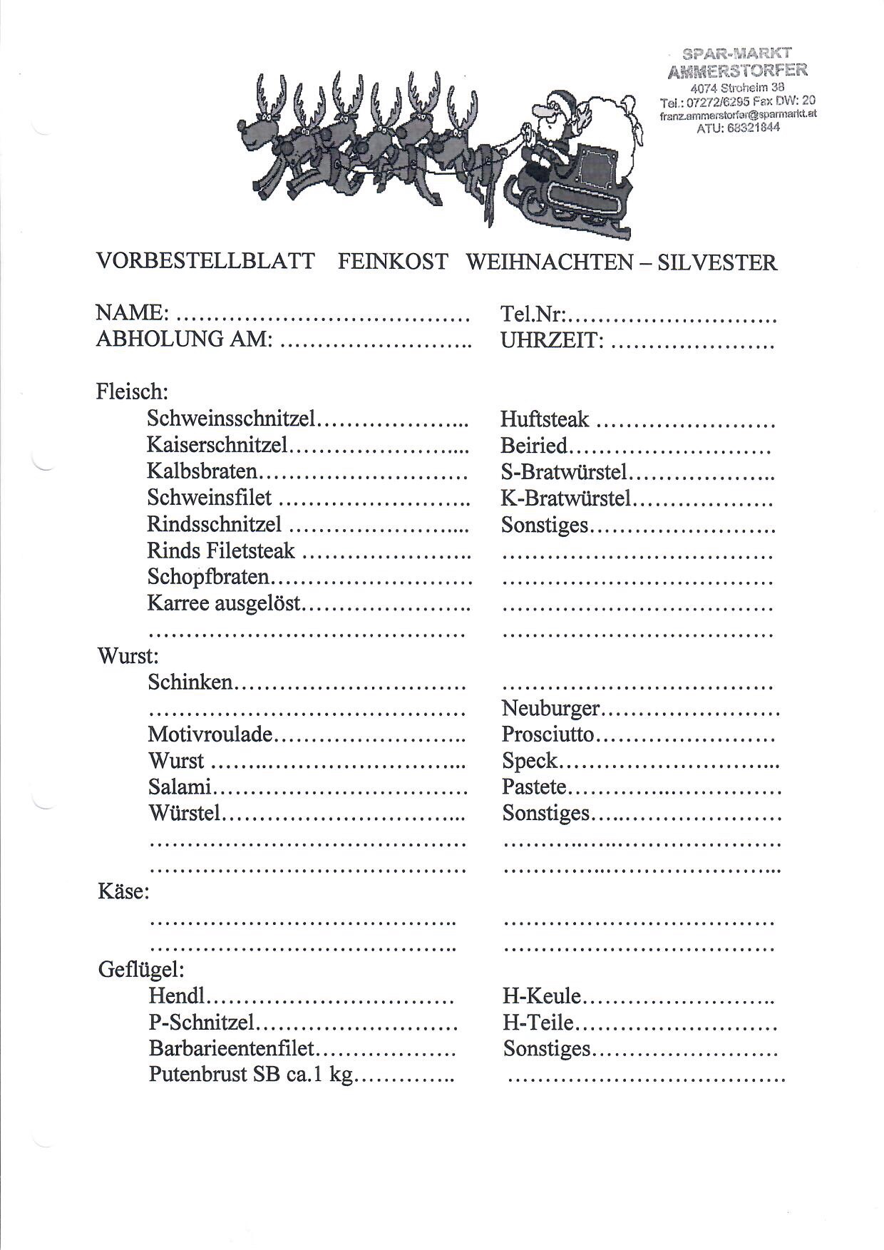 Die Vorbestellungen für Weihnachten und Silvester laufen bereits! Du kannst bis kurz vor dem Fest bei uns reservieren und stressfrei abholen! Reservierungslisten liegen bei unserer Feinkost auf!
